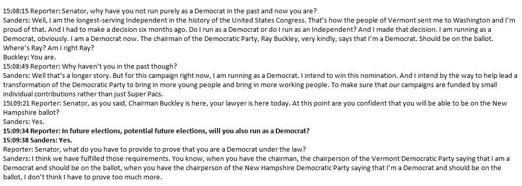 “I'm a Democrat and should be on the ballot, I don't think I need to say too much more,” Sanders said.
