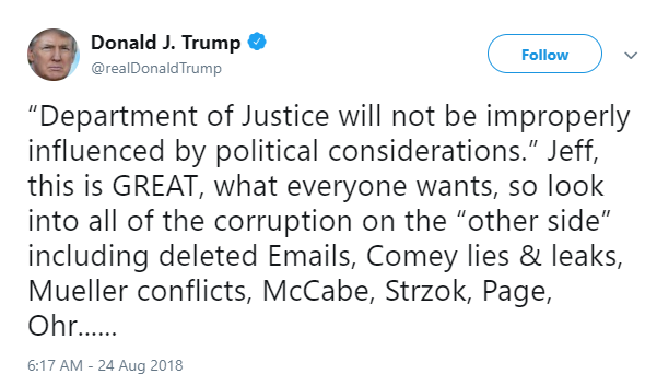 This morning, Trump went on a Twitter tirade that included this order for Sessions to investigate Trump's political opponents.